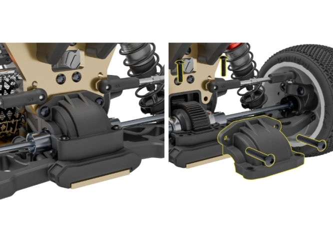 - Rychle přístupný planetový diferenciál: usnadňuje údržbu a nastavení. Planetový diferenciál je ideální pro kobercové nebo astro dráhy.