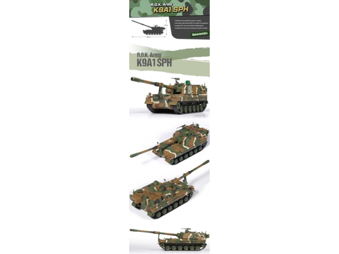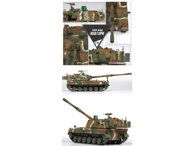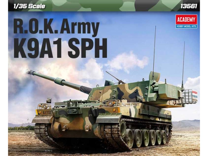 Academy plastikový model tanku Hanwha R.O.K. Army K9A1 SPH v měřítku 1:35 ke slepení. Délka 36 cm.