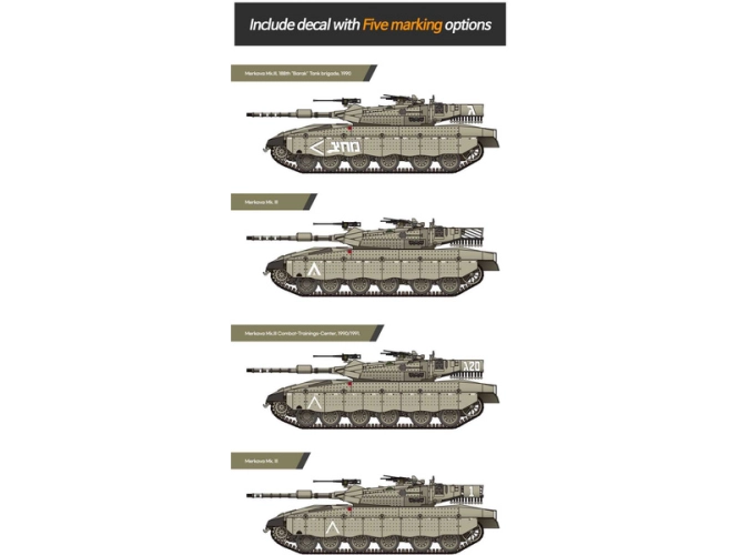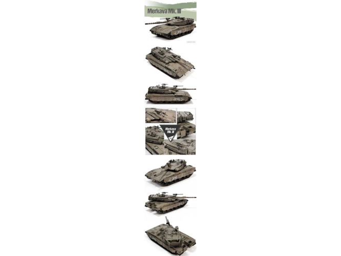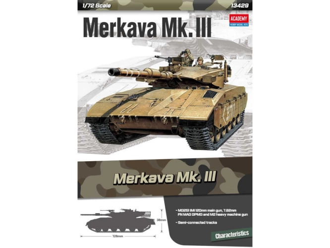Academy plastikový model tanku Merkava Mk. III v měřítku 1:72 ke slepení. Obtížnost 4, délka 12,8 cm.