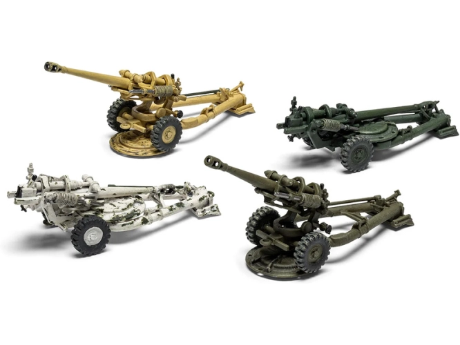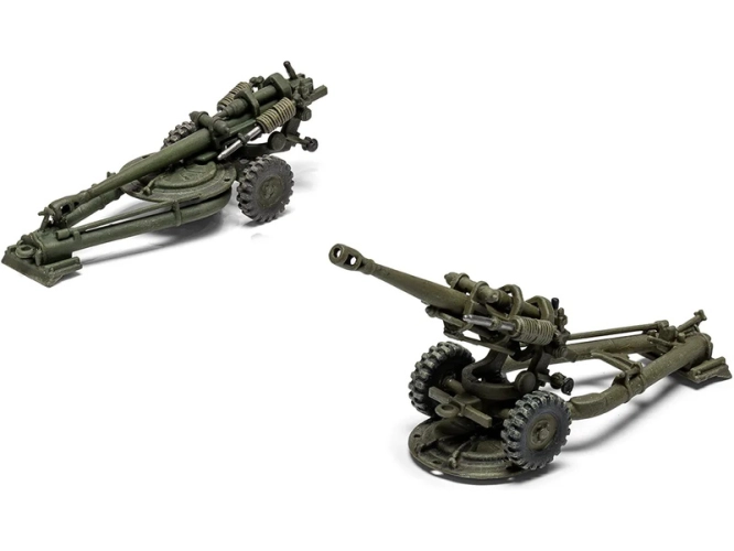 Plastikový model Airfix A02332 - dělo British 105mm Light Field Gun v měřítku 1:76 ke slepení. Stavebnice obsahuje 52 dílků, obtížnost 1.