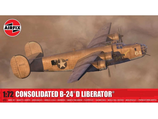 Plastikový model Airfix A09011 - letadlo Consolidated B-24D Liberator v měřítku 1:72 ke slepení. Stavebnice obsahuje 258 dílků, rozpětí křídel 298 mm, obtížnost 3.