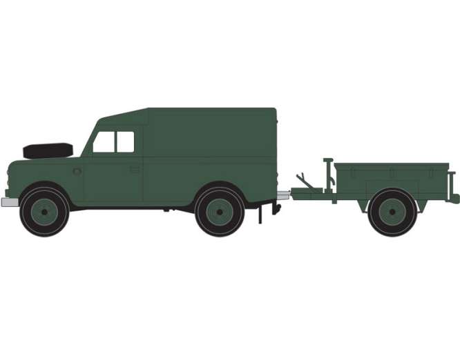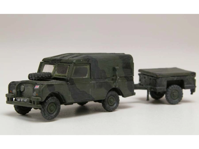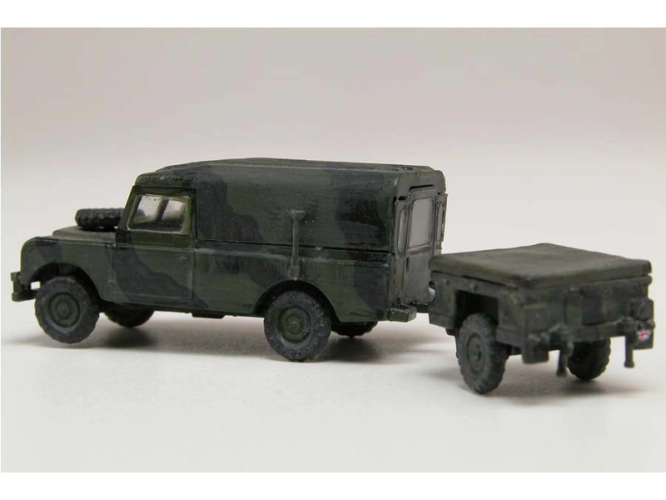 Plastikový model Airfix A02324 - military LWB Land Rover (Hard Top) and Trailer v měřítku 1:76 ke slepení. Stavebnice obsahuje 45 dílků, obtížnost 1.