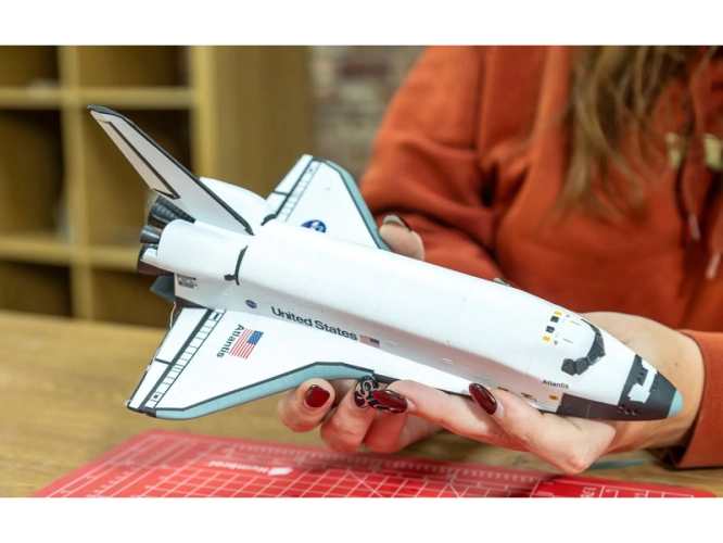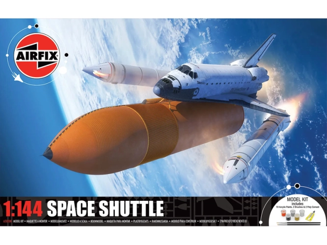 Plastikový model Airfix A50200 - raketoplán Space Shuttle v měřítku 1:144 ke slepení. Stavebnice obsahuje 99 dílků, obtížnost 3.