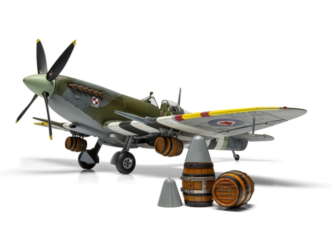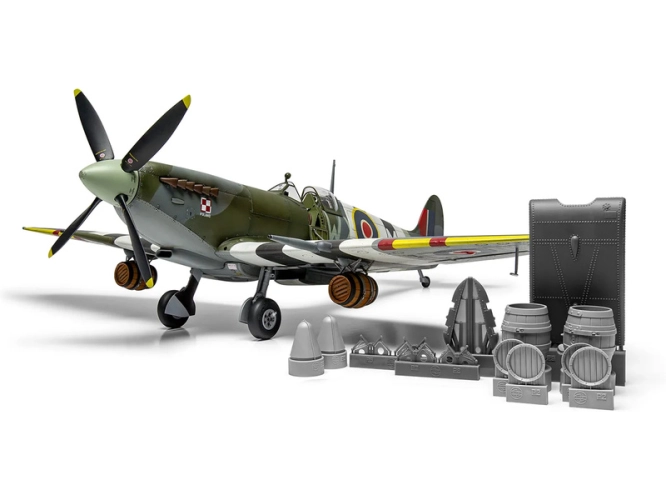 Plastikový model Airfix A17001A - Supermarine Spitfire Mk.IXc - Flying Dray v měřítku 1:24 ke slepení. Stavebnice obsahuje 448 dílků, rozpětí 469 mm, obtížnost 4.
