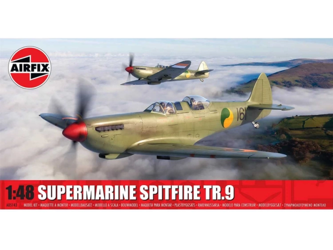 Plastikový model Airfix A05143 - letadlo Supermarine Spitfire Tr.9 v měřítku 1:48 ke slepení. Stavebnice obsahuje 128 dílků, rozpětí křídel 234 mm, obtížnost 2.