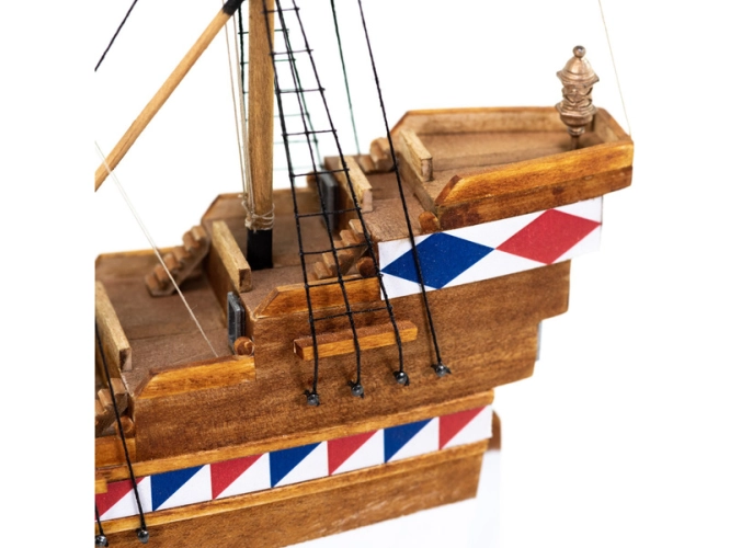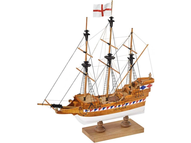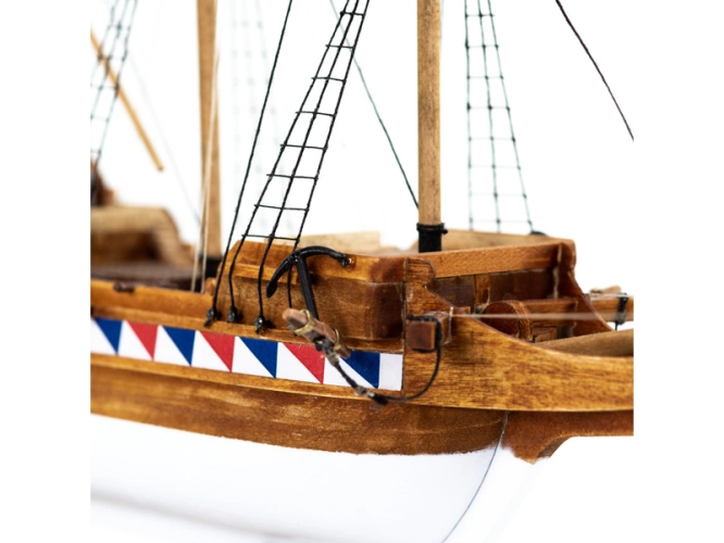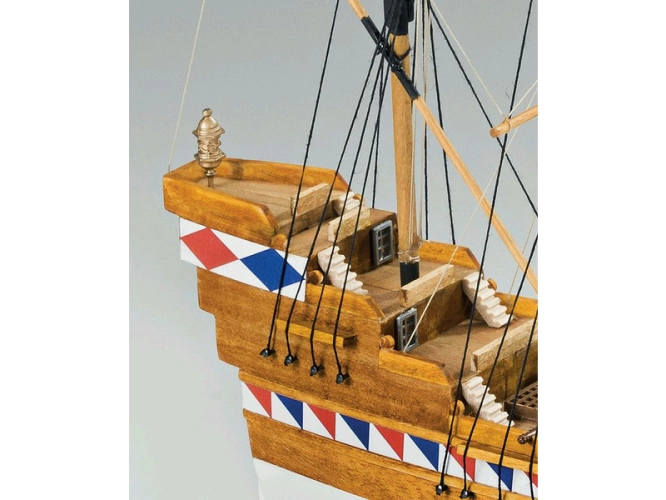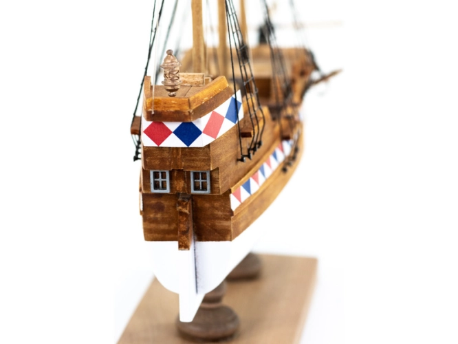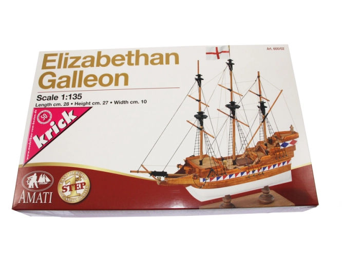 Stavebnice statické makety historické lodi, AMATI Galeóna 1:135 First step kit. Historické lodě jsou jedněmi z nejoblíbenějších lodních modelů, proto byla vytvořena série First step kit, která je určena pro začátečníky. V setu je hotový dřevěný trup lodi, kýl s výřezy a drobné příslušenství. Plachty nejsou v balení.