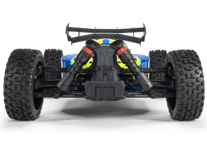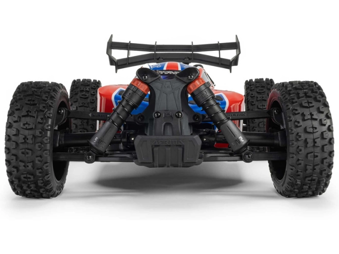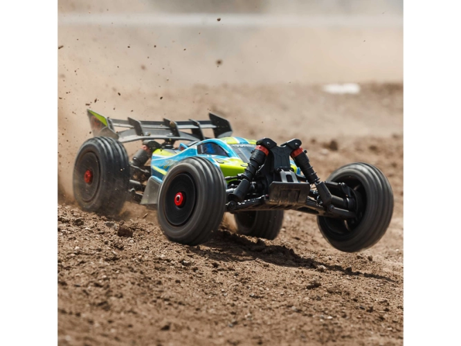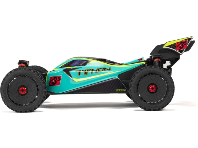 RC model auta Arrma Typhon 223S BLX typu Buggy s náhonem 4WD, nezávislým zavěšením, olejovými tlumiči a výkonným střídavým pohonem, dosáhne rychlosti až 80 km/h. To vše za dostupnou cenu pro takto výkonný model. Výborné jízdní vlastnosti zajišťuje pohon všech kol se středovým a nápravovými diferenciály. Obsažena je exkluzivní stabilizace jízdy DSC. RC auto je určeno pro děti, dospělé, začátečníky i zkušené jezdce, kteří získají hotový, odolný a rychlý model. To vše je zabaleno do pěkně zpracované karoserie se skrytým bezsponkovým systémem uchycení.