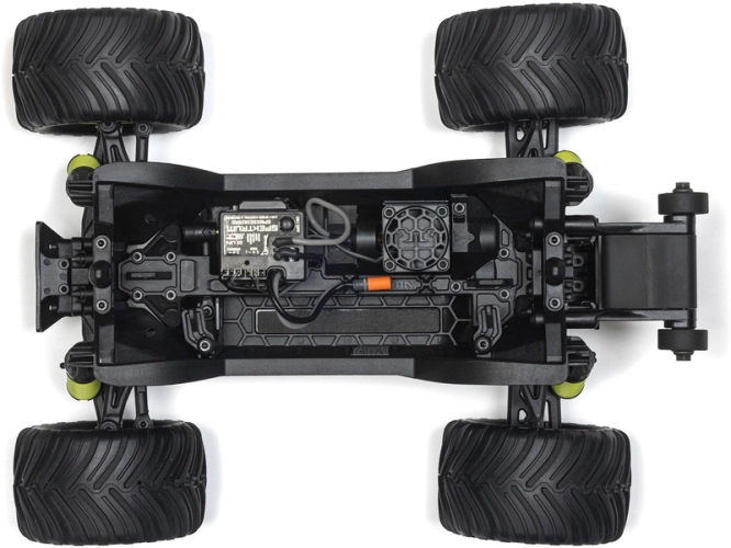 Na pravé straně podvozku je uložena pohonná jednotka sestávající z motoru ARRMA MEGA 380 28T a integrovaného regulátoru 25A s přijímačem. Na chladiči motoru je usazen ventilátor pro ještě efektivnější chlazení. Celý blok elektroniky lze pro snadný servis vyjmout.