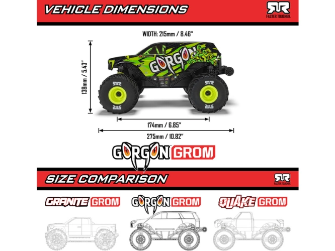 ARRMA Gorgon Grom 4x4 1:16 je navržen a vyroben podle stejně vysokých standardů, odolnosti a výkonů, jaké očekáváte od RC aut ARRMA. Je jen o něco menší!