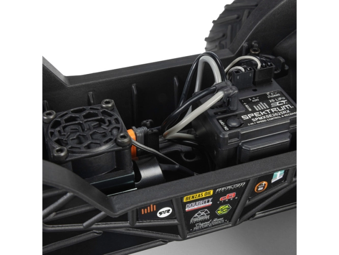 Pro spolehlivé řízení je nainstalováno servo řízení Spektrum™ SX110 s kovovými převody, které zajistí vysokou odolnost i v případě nárazu.