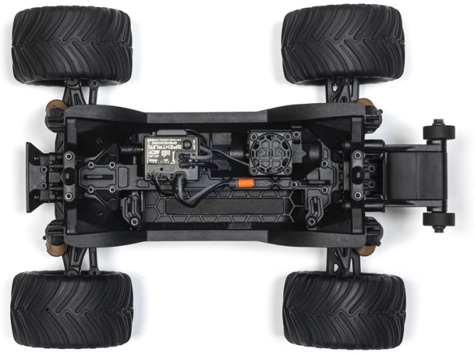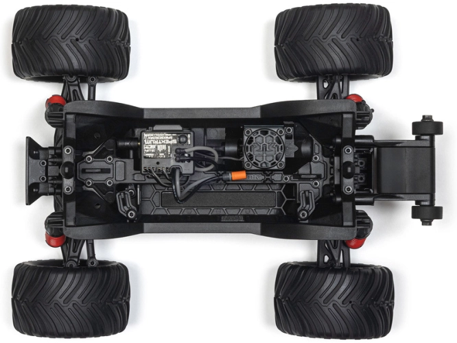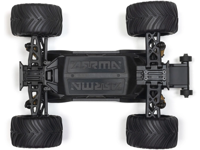 Na pravé straně podvozku je uložena pohonná jednotka sestávající z motoru ARRMA MEGA 380 28T a integrovaného regulátoru 25A s přijímačem. Na chladiči motoru je usazen ventilátor pro ještě efektivnější chlazení. Celý blok elektroniky lze pro snadný servis vyjmout.