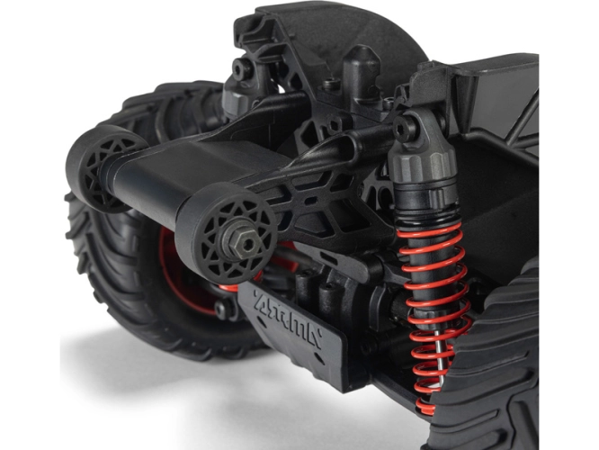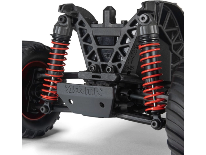 Pro brutální jízdu přes překážky, skoky i velké nerovnosti je model vybaven kvalitními olejem plněnými tlumiči. Pokud máte nerovný terén můžete si nastavit větší předpětí pružin a tím i vyšší světlou výšku pro lepší průchodnost terénem.