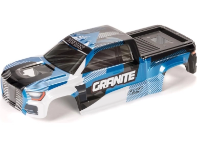 Náhradní díl pro RC model auta Arrma Granite 223S BLX 1:10 4WD: karosérie bezsponková modrá. Nabarvená, oříznutá s aplikovanou grafikou.