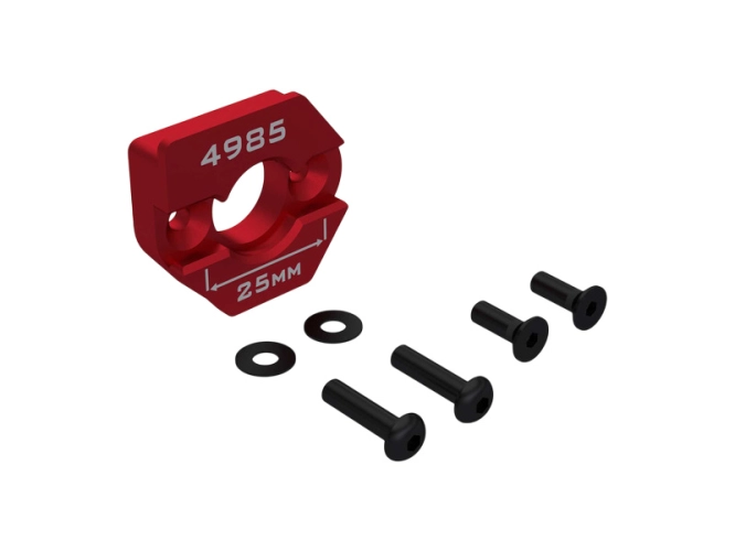Náhradní díl pro RC model auta Arrma 1:7 Limitless: lože motoru posuvné, vyrobené z červeně eloxovaného hliníku, pro motory 4985 s montážními otvory s roztečí 25 mm.