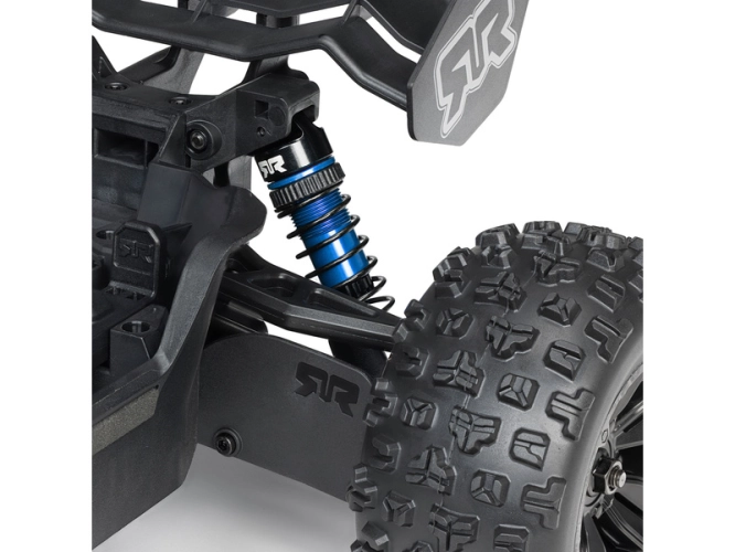 Pro brutální jízdu přes překážky, skoky i velké nerovnosti, je model vybaven kvalitními tlumiči s odolnými hliníkovými těly a olejovou naplní, která zabraňuje rozkmitávání na nerovnostech.