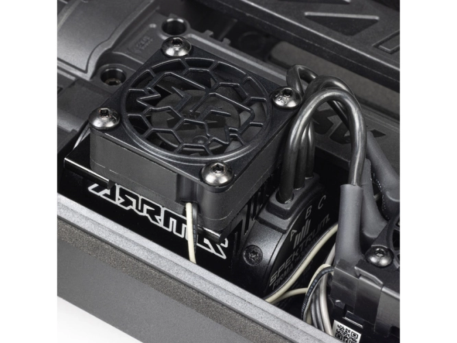 Na pravé straně podvozku je uložena pohonná jednotka, sestávající z motoru Firma 2848 3000Kv a integrovaného regulátoru 40A s přijímačem. Oba komponenty jsou efektivně chlazeny ventilátorem. Jednotka Spektrum umožňuje rozsáhlé nastavení - jako například jízdní režim, vypínací napětí, akceleraci, intenzitu brzdy, časování a další (nastavení se provádí pomocí tlačítka a indikační LED). V případě použití jiné RC soupravy lze jednotku využít jen jako regulátor.