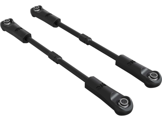 Arrma napínák ocelový M3x48mm (2ks). Snadné seřízení 4 mm klíčem. Logo Arrma. Včetně koncovek s čepy.