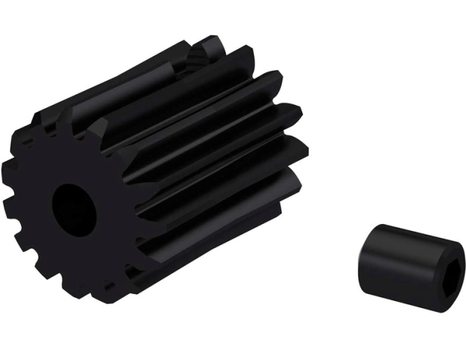 Arrma pastorek na hřídel 2.3 mm s 15 zuby a modulem ozubení 50.8DP (0,5 mm) pro RC modely aut. Vyrobeno z kalené oceli. CNC obráběný. Stavěcí šroub M3 x 4 mm.