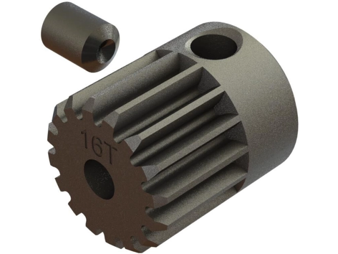 Arrma pastorek na hřídel 2.3 mm s 16 zuby a modulem ozubení 50.8DP (0,5 mm) pro RC modely aut. Vyrobeno z kalené oceli. CNC obráběný. Stavěcí šroub M3 x 4 mm.