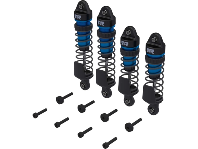 Náhradní díl pro RC modely aut Arrma Mini 1:16 (Mini Kraton): tlumič kompletní přední/zadní modrý (4). Odolné hliníkové tělo. Matice pro předpetí pružiny. Sestavený, včetně pružiny a oleje 700 cSt.