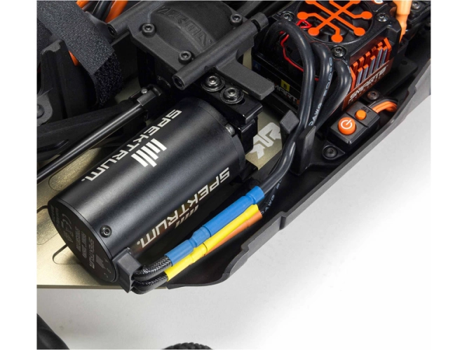 Střídavý motor Firma 2050Kv je dodáván z výroby nastavený na černě eloxovaném hliníkovém posuvném držáku, který zajišťuje vysokou odolnost a rychlý bezproblémový přístup. Držák serva a 17 mm unašeče kol jsou také vyrobeny z hliníku pro pevnost a zachování nízké hmotnosti.
