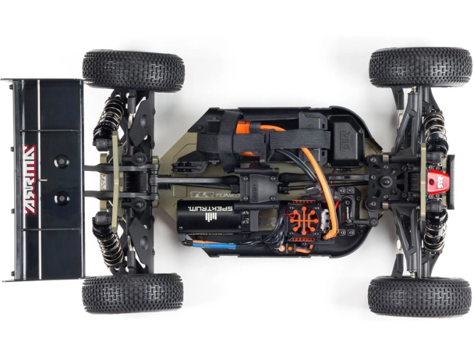 Závodní RC model auta Buggy ARRMA TLR Tuned TYPHON 4WD v měřítku 1:8 je vybaven špičkovými díly TLR s větší pevností, dlouhou životností a širokou možností nastavení jízdních vlastností. Pro Váš vstup do soutěžního závodění máte připraven hotový sestavený vůz, který má nainstalovány výkonné komponenty pohonu Spektrum Firma a je vybaven RC soupravou Spektrum 2.4GHz SLT3. Balení obsahuje vše potřebné k provozu, kromě baterií a nabíječe.