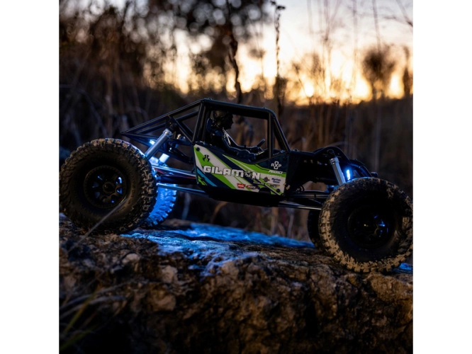 RC model Axial AXP8 Gilamon 4X4 v měřítku 1:8 je jeden z nejlepších crawlerů pro překonávání překážek a trialovou jízdu. Jeho unikátní funkce mu dávají velké možnosti v řízení a navíc je připraven pro další vylepšování jeho schopností. Nové šasi AXP8 obsahuje portálové nápravy AF16P se 4bodovým zavěšením. Zadní náprava je vybavena revoluční funkcí selektivního řízení ASD (Axial Selectable Drive), což umožňuje dálkově přes vysílač zablokovat zadní levé nebo pravé kolo, pro ještě menší poloměr otáčení a výrazně lepší manévrovací schopnosti.