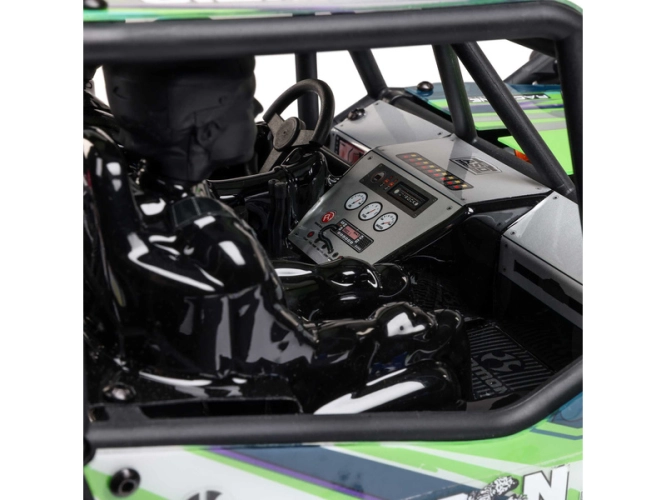 Náhon 4WD zajišťuje bohatě dimenzovaný stejnosměrný motor Axial Boulder 550 21T, který posílá vysoký točivý moment, prostřednictvím odolných hnacích hřídelí WB12, na oficiálně licencovaná kola 2.2" Raceline Avenger s 5.5" pneumatikami Mickey Thompson Baja Boss M/T. Karoserii tvoří rámová klec s kokpitem a figurkami řidiče a navigátora. Pro noční vyjížďky jsou na rám připevněna LED světla, která osvěcují každé kolo. Je možné přepínat mezi různými barvami osvětlení. Použita je značková elektronika Spektrum – regulátor Firma 70A s telemetrií Smart, vysílač DX3 a přijímač SR515. Servo řízení S682 je vybaveno kovovými převody, stejně jako servo SX117AX ovládající funkci ASD na zadní nápravě.