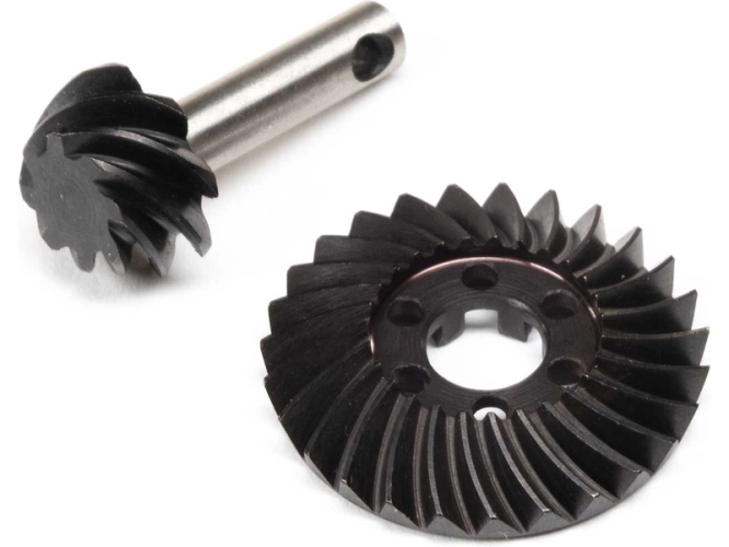Náhradní díl pro RC model auta Axial SCX10 III: kuželový pastorek a ozubené kolo 27/8 HD. Určeno pro nápravy AR45. Převodový poměr přidává 10% rychloběh (Overdrive).
