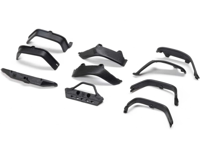 Náhradní díl pro RC modely aut Axial SCX30: nárazníky, blatníky Jeep Wrangler JLU.