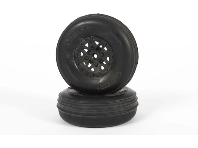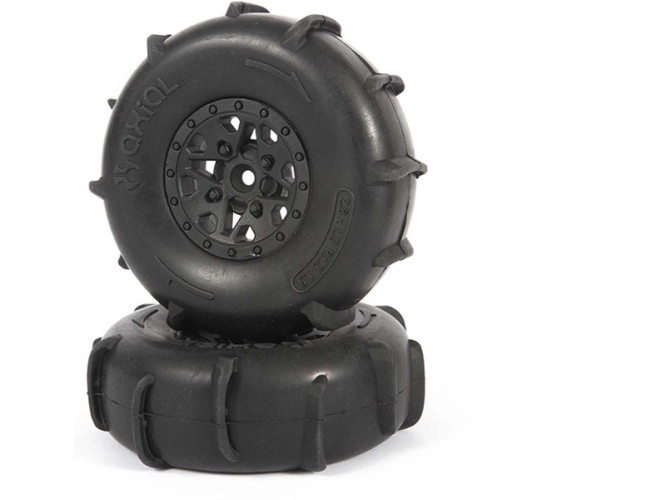 Náhradní díl pro RC modely aut Axial Yeti Jr.™ Can-Am® Maverick 1:18.: přední kola s pneumatikami ST28 Razor a zadní kola s pneumatikami Paddle, do písku a sypkých terénů, unášeč 12mm.