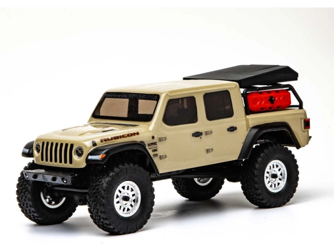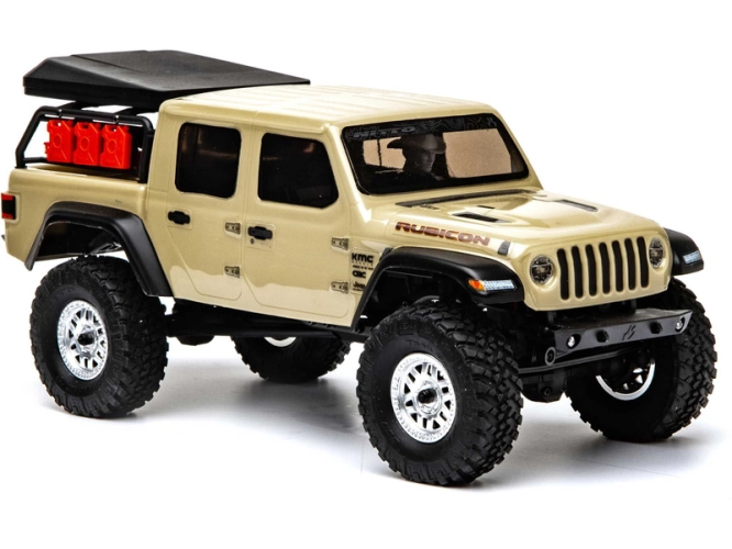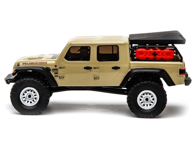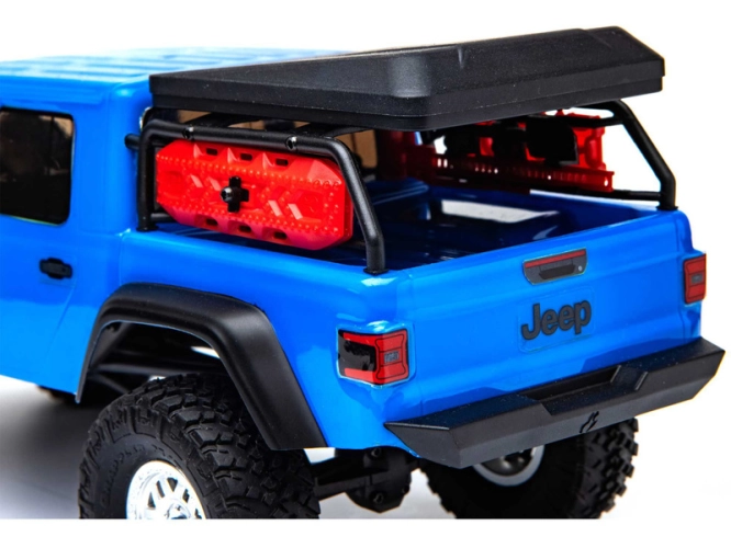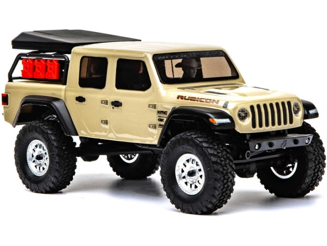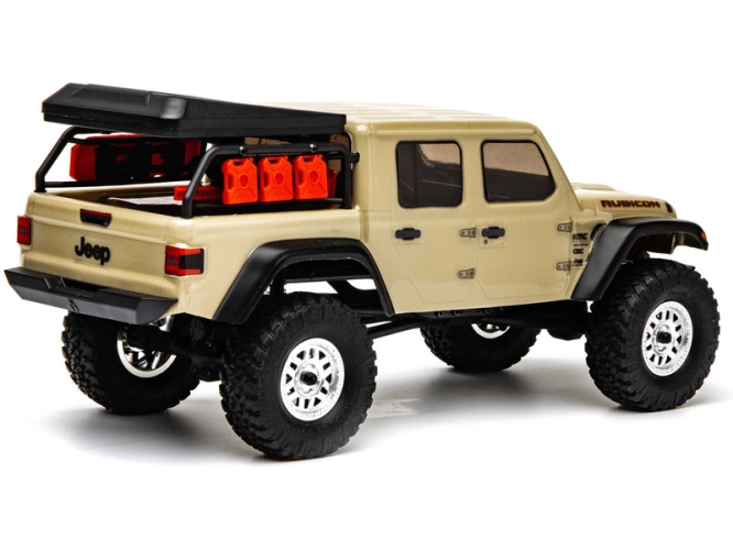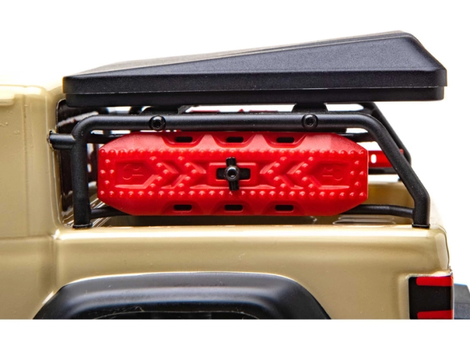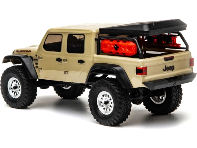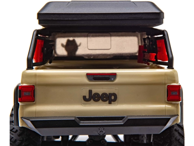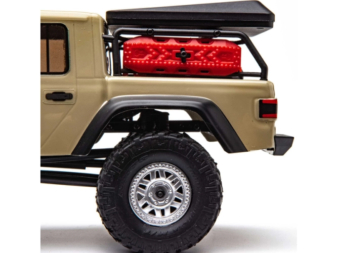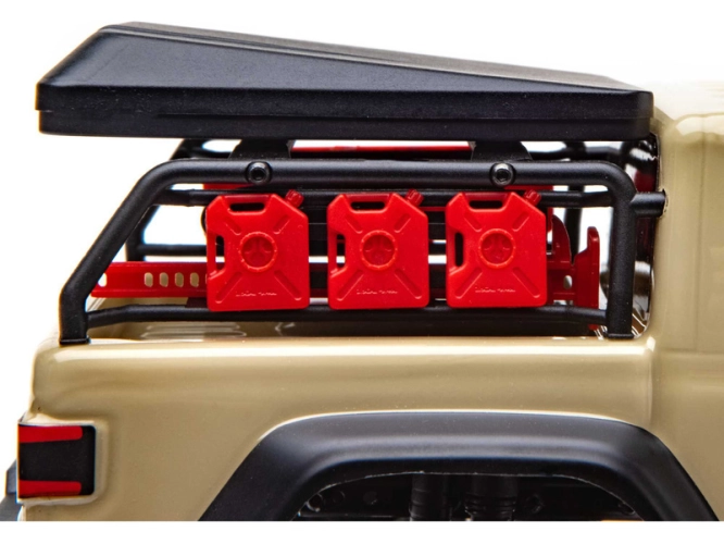 Kromě oficiálně licencované atraktivní hotové karosérie, obsahuje SCX24™ Jeep® JT Gladiator detailně propracovaný interiér se sedačkami a řidičem, namontovaným nosičem, střešním stanem a příslušenstvím.