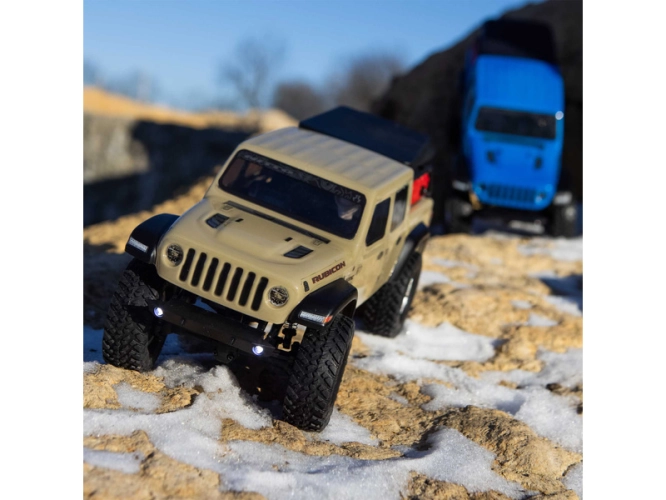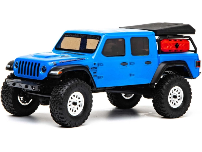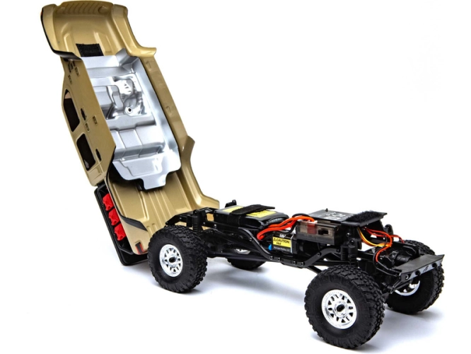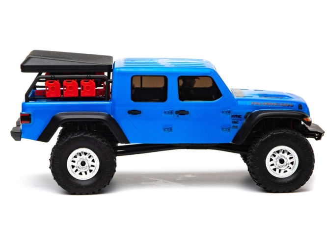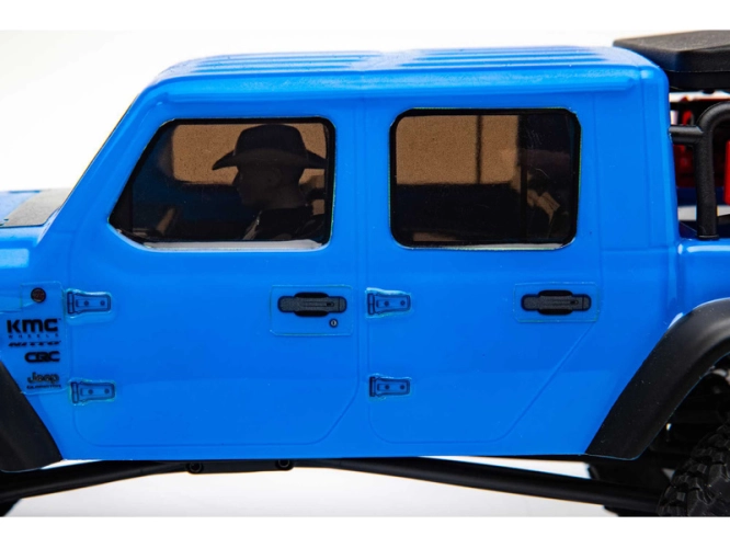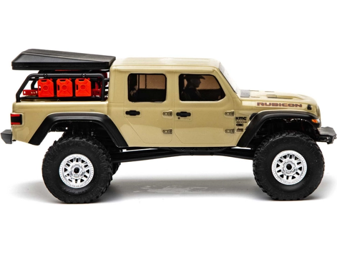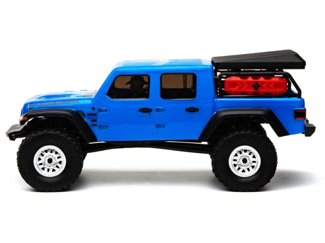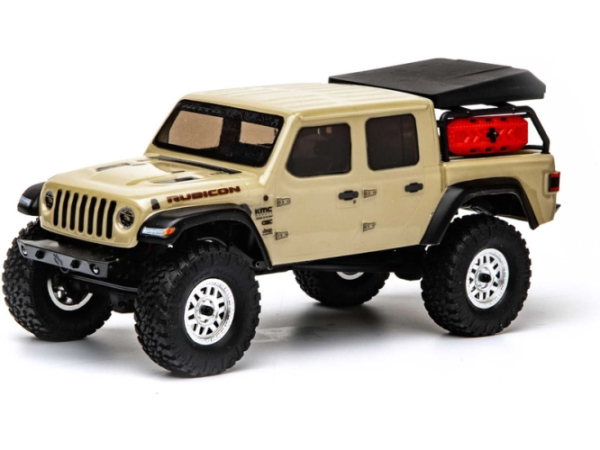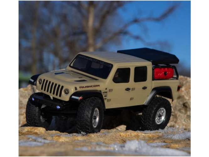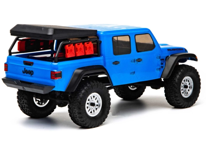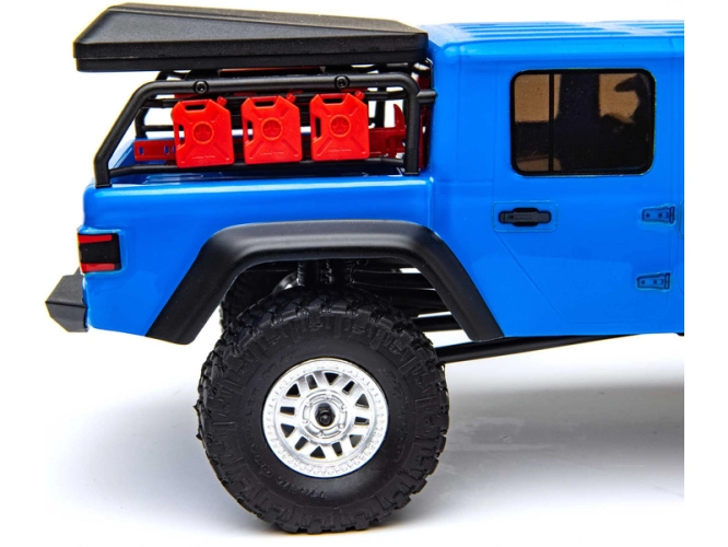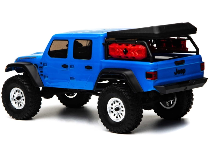 Kromě oficiálně licencované atraktivní hotové karosérie, obsahuje SCX24™ Jeep® JT Gladiator detailně propracovaný interiér se sedačkami a řidičem, namontovaným nosičem, střešním stanem a příslušenstvím.
