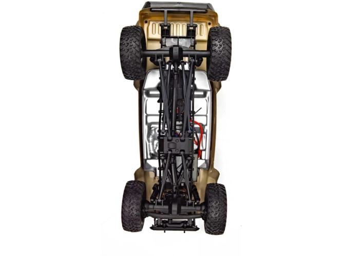 Stejně jako platforma Axial SCX10 v měřítku 1:10, má i podvozek Axial SCX24 robustní ocelové lišty rámu podvozku s výztuhami, které udržují podvozek dostatečně tuhý i při velkém překroucení náprav.