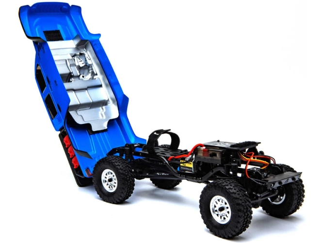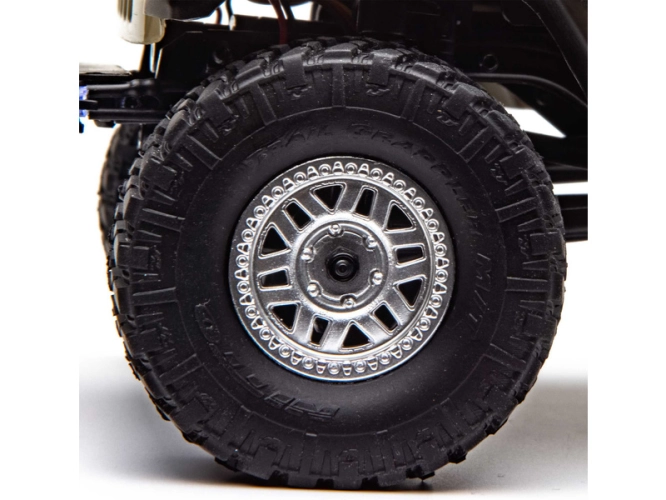 Podvozek SCX24™ zvládne každou výzvu díky trvalému pohonu všech čtyř kol, 3-bodovému přednímu a 4-bodovému zadnímu zavěšení, které se vždy přizpůsobí terénu. Realistický ocelový rám odolá tvrdým nárazům, šnekové převody na nápravách zvyšují světlou výšku. Nový, o 22 mm delší rozvor zvyšuje stabilitu, zatímco robustní přední a zadní nápravy, přední čepy a ocelové poloosy vám umožní s jistotou slézat překážky. Výkon zajišťuje motor Dynamite® 88T a 2-článková LiPol baterie. Součástí je rádiový systém 2,4GHz pro přesné a spolehlivé ovládání.