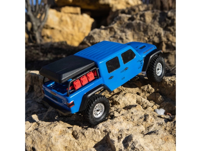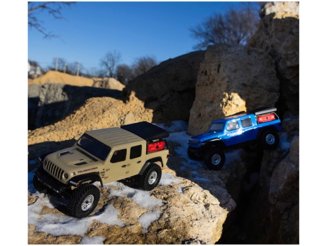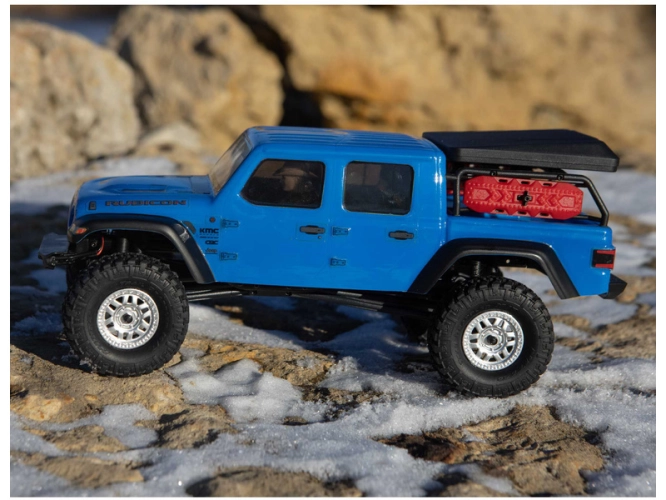RC model auta na dálkové ovládání v měřítku 1:24 Axial SCX24 Rock Crawler s karosérií Jeep JT Gladiator. Model je sestaven a připraven k jízdě, vše potřebné je v balení. RC souprava 2,4GHz, motor Dynamite® 88T, LiPol baterie Dynamite 350mAh 7.4V s USB nabíječem.