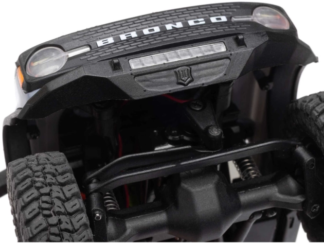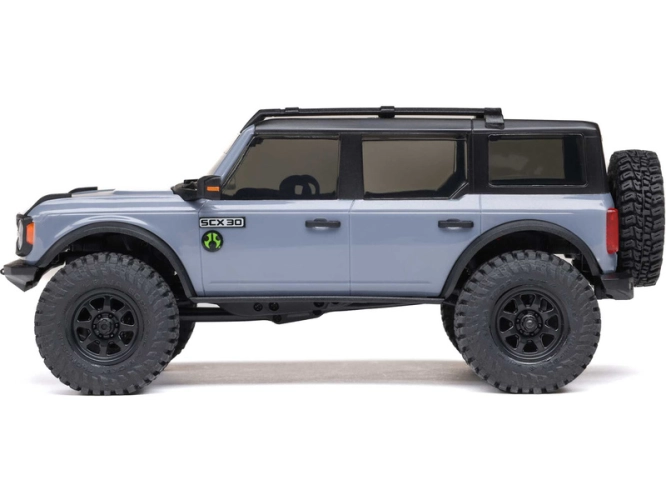 Axial SCX30 Ford Bronco je neuvěřitelně malý expediční RC model auta v měřítku 1:30, který si však zachovává všechny funkce, detaily a jízdní vlastnosti větších modelů. Se svou délkou pouhých 16 cm obsahuje plnou výbavu k překonávání překážek a k nespočetu hodin zábavy. Model má vícebodové zavěšení, stálý pohon 4x4, proporcionální ovládání plynu i řízení a detailní licencovanou ABS karoserii s předním a zadním LED osvětlením. Vše pro provoz je obsaženo - v modelu je instalovaná kompletní elektronika a výkonný stejnosměrný motor, součástí balení je kromě volantového vysílače i akumulátor 2S LiPo 160mAh a USB nabíječ.