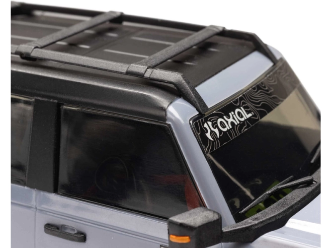 Karoserie z tvrdého vstřikovaného ABS materiálu je plná detailů pro autentický vzhled v měřítku. Nechybí čirá okna, přední mřížka chladiče, zrcátka, kliky dveří a střešní nosiče. Úchvatný vzhled doplňuje přední bílé a zadní červené LED osvětlení.