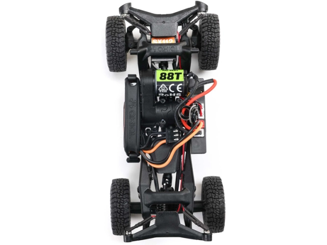 Značková elektronika Spektrum je umístěna nízko v podvozku pro zlepšení těžiště. Model je dodáván s výkonnou LiPo baterií Spektrum 2S a 0,5A USB-C nabíječem pro rychlé, snadné a hlavně bezpečné nabíjení.