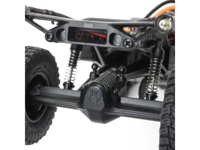 Vysoce výkonný podvozek s vícebodovým zavěšením přímých náprav obsahuje i zkosené ochranné kryty, které vám pomohou překonat náročné překážky. Tento prvek se obvykle nachází pouze u velkých crawlerů. Zkosené nápravy a ramena s vysokou světlou výškou pomáhají předcházet zasekávání o překážky.