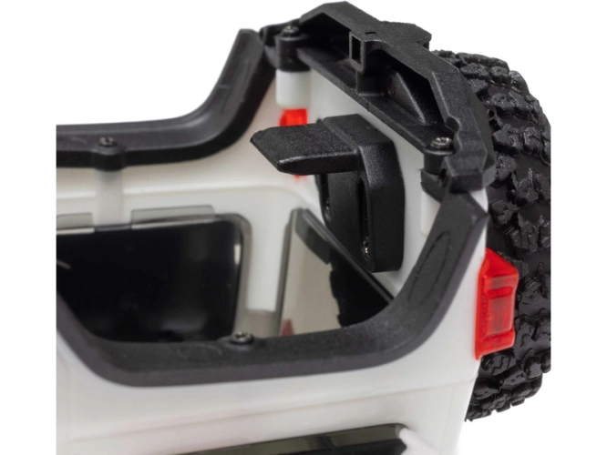 Oficiálně licencované pneumatiky Yokohama Geolandar X-MT a kola Black Rhino Atlas zajišťují, že SCX30 Jeep Wrangler JLU má veškerou potřebnou trakci, ať už se plazí po stole nebo venku po kamenitých a nezpevněných cestách. Měkké pneumatiky jsou také doplněny pěnovými vložkami instalovanými z výroby.