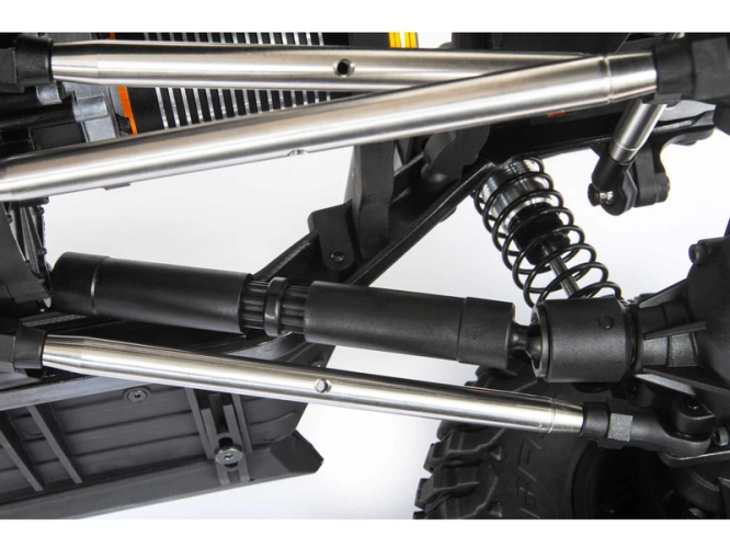 Pro optimální ovladatelnost je model na podvozku SCX6™ vybaveno odolným tří.bodovým předním a čtyř-bodovým zadním zavěšením náprav AR90. Nápravy mají pevností hřídele pro vysoké zatížení a zvládají jízdu v těžkém terénu.