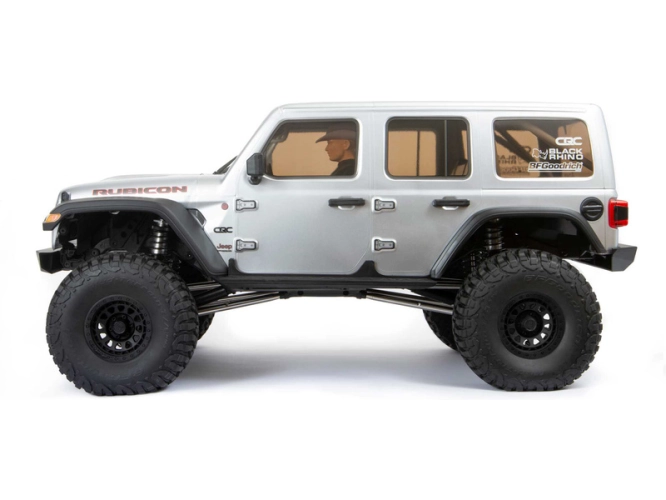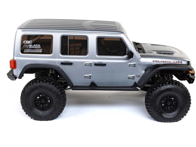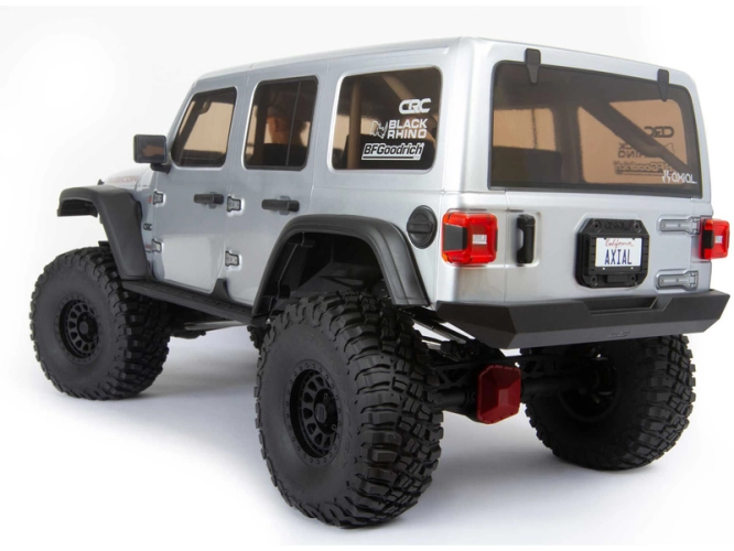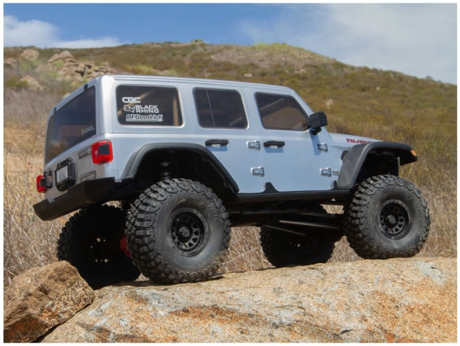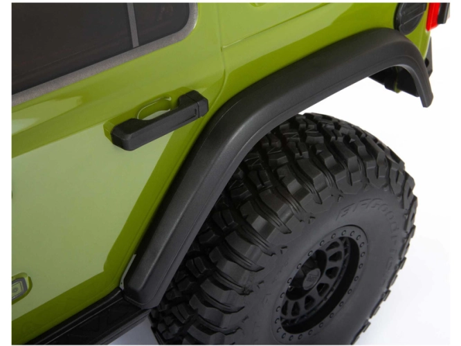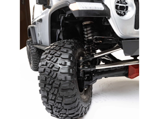 Masivní, 7" velké pneumatiky BFGoodrich® KM3 mají vynikající přilnavost a poskytují autu velkou světlou výšku pro jízdu přes kameny a všechny terénní nerovnosti. Jsou obuty na licencovaných, 3-dílných beadlock kolech Black Rhino Primm, takže pneumatiky lze snadno vyjmout, vysušit či vyměnit bez lepení. Nyní je SCX6™ Jeep® JLU Wrangler 4WD připraven vyrazit kamkoli a nabídnout vám skvělou zábavu.