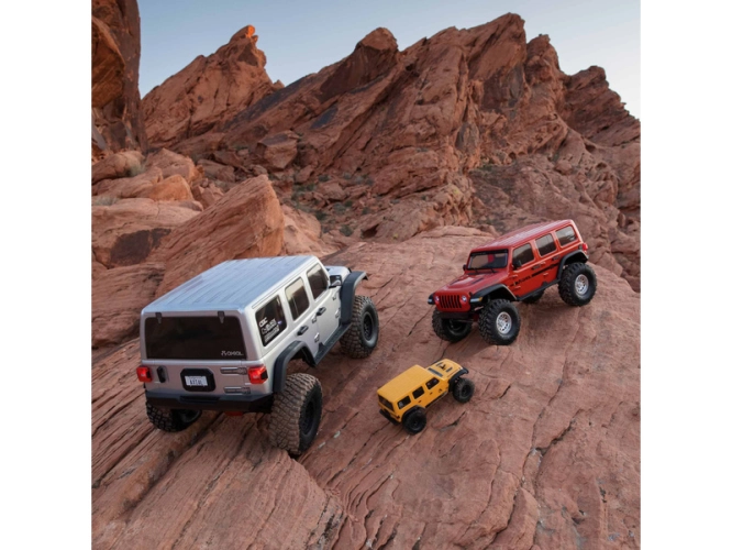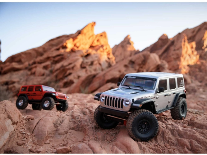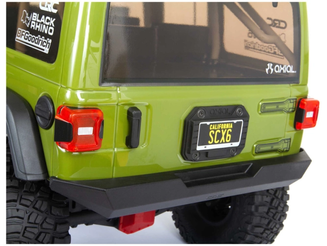 SCX6™ Jeep® JLU Wrangler 4WD posouvá maketovost Axial® na vyšší úroveň. Na základě konstrukce osvědčeného podvozku SCX10™ III, byl navržen nový větší podvozek SCX6™ v měřítku 1:6. Je navržen pro extrémní odolnost a výkon s nápravami AR90. Pro optimální ovladatelnost má podvozek tří-bodové přední zavěšení Panhard a zadní čtyř-bodové zavěšení. Převodovka nabízí řazení dvou převodových stupňů, přičemž součástí dodávky je i servo s kovovým převodem Spektrum™ S614 a táhlo řazení.