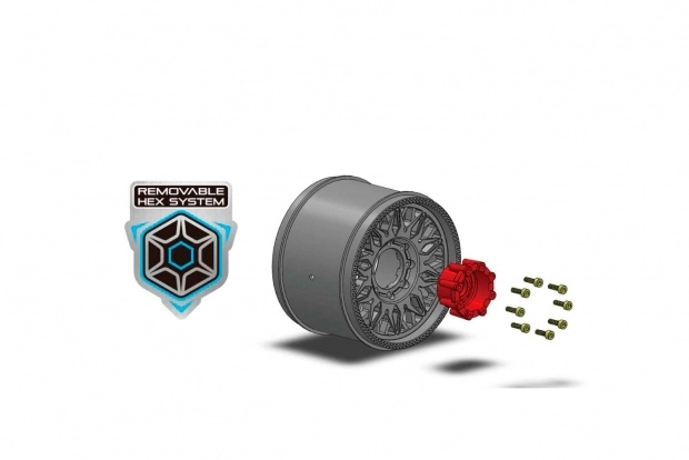 Systém odnímatelných hexů je nová funkce, která vám umožní vybrat si z různých středů, tak aby kola pasovala na vaše RC auto. Ty jsou součástí balení a lze je snadno nasadit a sejmout pomocí přiložených šroubků.
