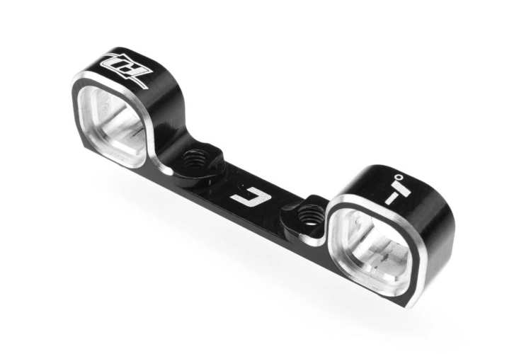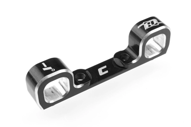 HD Hliníkový C držák zavěšení od Revolution Design pro nejnovější modely T7 a SC7 od Team Associated, stejně jako pro aktualizované buggy B7 vybavené novou 3-Gear převodovkou, je nezbytným vylepšením pro závodníky, kteří hledají zvýšenou odolnost a možnosti ladění. Tyto držáky jsou k dispozici ve dvou variantách, se standardní geometrií (RDRP0757) a s verzí s o 1 stupeň sníženou sbíhavostí (RDRP0758). Jsou vyrobeny z vysoce kvalitního hliníku 7075 a nabízejí pevnější a robustnější konstrukci než sériové díly.