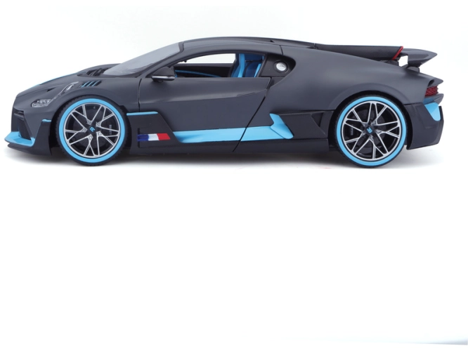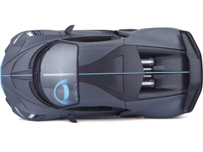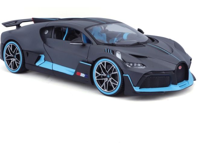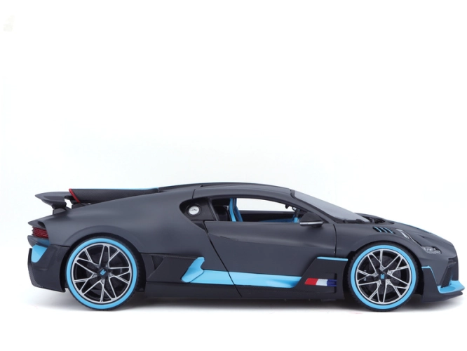 Kovový model auta 1:18 Bburago 18-11045 Bugatti Divo nejen pro sběratele. Má otevírací dveře a kapotu, otočná kola. Barva modelu je stříbrná.