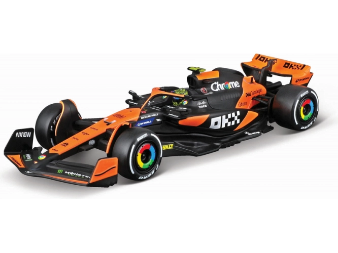 Kovový model Bburago McLaren F1 Team MCL38 (2024) nejen pro sběratele, v měřítku 1:43. Detailní provedení, přívětivá cena, pilot #4 Norris. Model je velký přibližně 10cm.