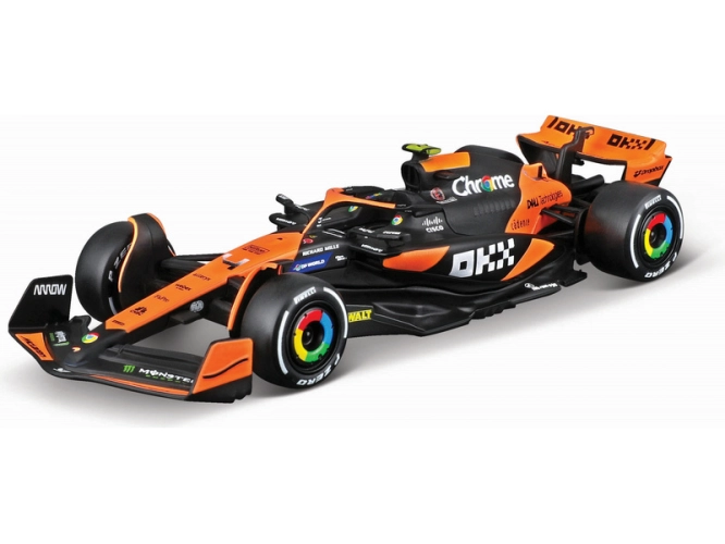 Kovový model Bburago McLaren F1 Team MCL38 (2024) nejen pro sběratele, v měřítku 1:43. Detailní provedení, přívětivá cena, pilot #4 Norris. Model je velký přibližně 10cm.