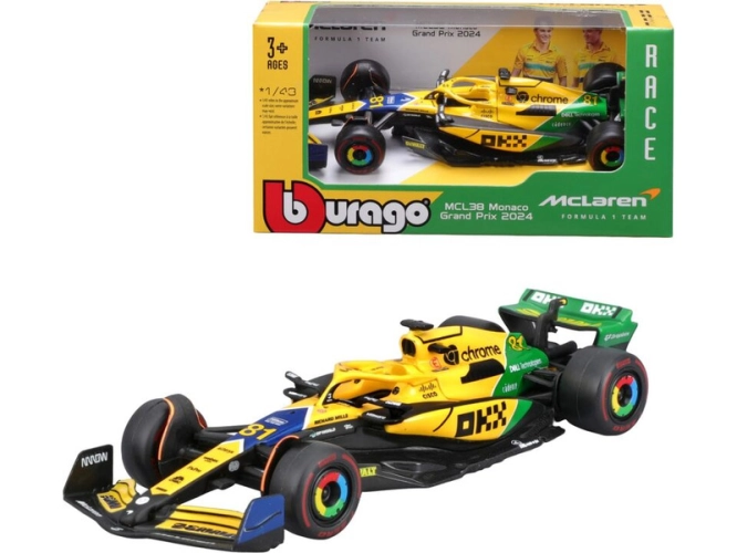 Kovový model Bburago McLaren F1 Team MCL38 (2024) nejen pro sběratele, v měřítku 1:43. Detailní provedení, přívětivá cena, pilot #81 Piastri, Senna Edtion. Model je velký přibližně 10cm.